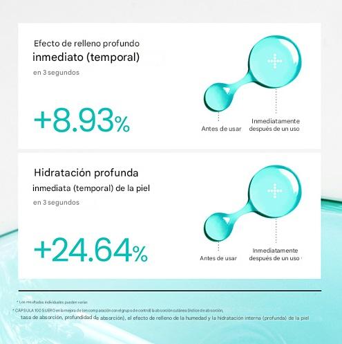 Para hidratación profunda, reparación celular, luminocidad y firmeza. Se puede mezclar con maquillaje para hacer el efecto "glass skin" popular en Corea.
